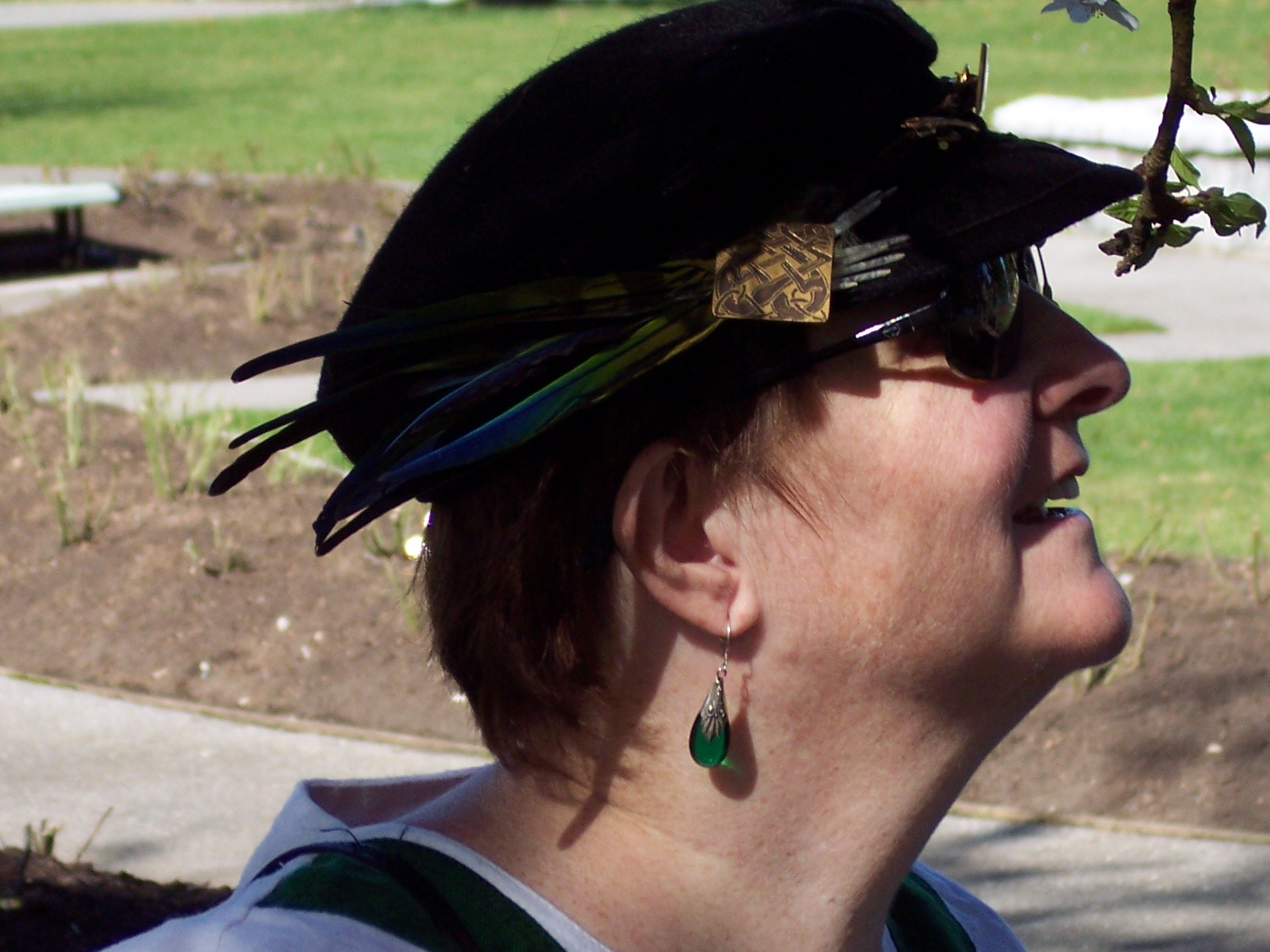Later, Trish was to become involved in countless other groups: The Coquitlam Needleart Guild, The New Westminster Historical Society, the Pacific Rose Society, and, of course, her anonymous Monday night stitchery group are only the ones that come immediately to mind. She also became known in local exotic bird circles, as we quickly established a reputation for people who could take on Nanday conures, one of the noisiest and most demanding of parrot species. Eventually, our living room housed four: Ningabuble, his mate Sophy, their sons Rambunctious and Jabberwock and, later – after Jabberwock died – a rescue bird called Beaudin.