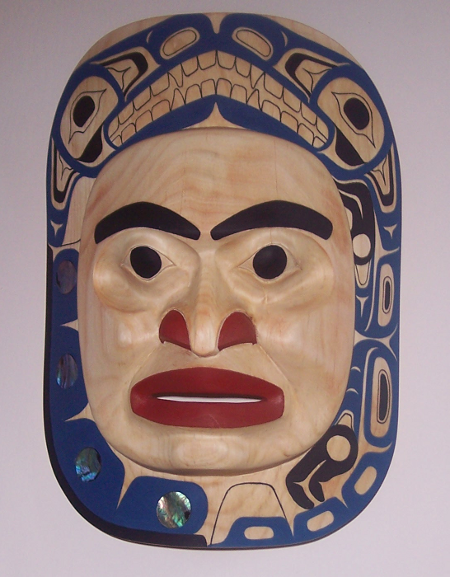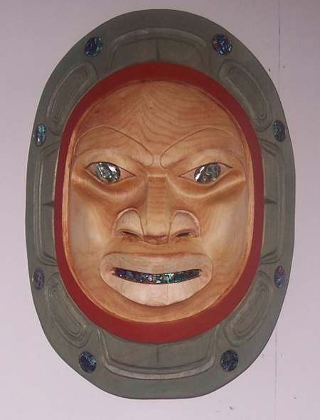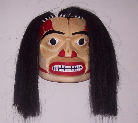 However, the most promising artist in the show was Angelo Cavagnaro. His “Gitmidiik Wild Man” mask and “Lunar Eclipse Mask” owe their success to their high standard of painting, but, although their treatments of their subjects are conventional, both are competently carved: