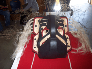 One of the two honorable mentions was given to Roberta Quock, a Tahltan from Telegraph Creek who grew up in Merritt and Kamloops. Long interested in painting and beadwork, she says, “I’ve always wanted to go to this school to study more and to learn carving and study more of the culture.”