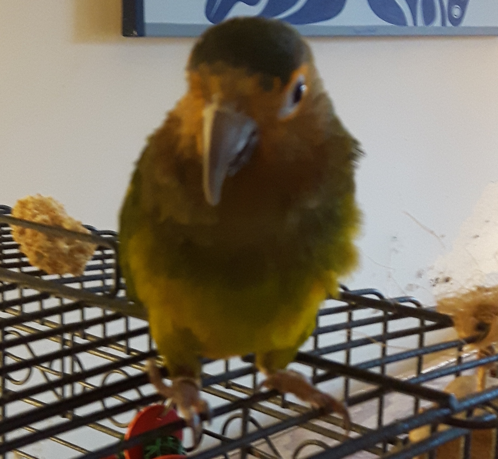 Morrison had been abandoned by his person. His person had not seen fit to take the little bird when he separated, and the wife had no interest in keeping birds. Greyhaven’s volunteers had seen to his basic needs, but his noisy and curious personality was too demanding for most of them to give him more than minimal attention. But that same personality is what has always attracted me to conures, so I agreed to consider him.